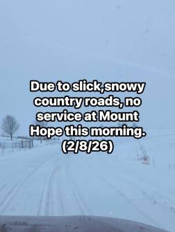 No Sunday Morning service today, Feb 8, 2026, due to snow and slick country roads.
